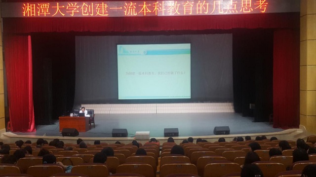 4月23日下午,在湘潭大学学生活动中心,碧泉书院、外国语学院、文学与新闻学院、法学院、信息工程学院、机械工程学院联合开展“明道信道”宣讲活动。廖永安副校长为300余名教职工作题为《湘潭大学创建一流本科教育的几点思考》的讲座。碧泉书院党委书记刘圣陶主持会议。