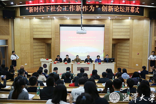 11月17日,湖南省第十一届研究生创新论坛湘潭大学“新时代下社会工作新作为”分论坛在图书馆报告厅举行。湖南省教育厅高等教育处处长曾力勤、副校长刘建平出席。