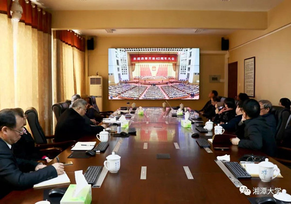 12月18日,庆祝改革开放四十周年大会在北京人民大会堂隆重举行。中共中央总书记、国家主席、中央军委主席习近平出席大会并发表重要讲话。湘大师生认真观看大会盛况,仔细聆听习总书记的重要讲话,深切感受改革开放的辉煌成就。