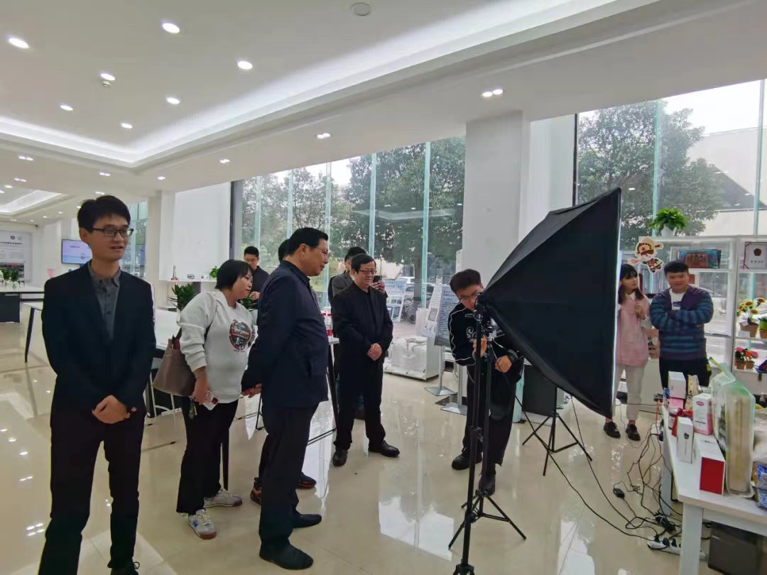 双创学院成果展示厅,观看了省营销帮扶大赛参赛选手对碧泉村农产品的直播,听取了陈代湘院长对学生活动中心湖湘文化墙的介绍。