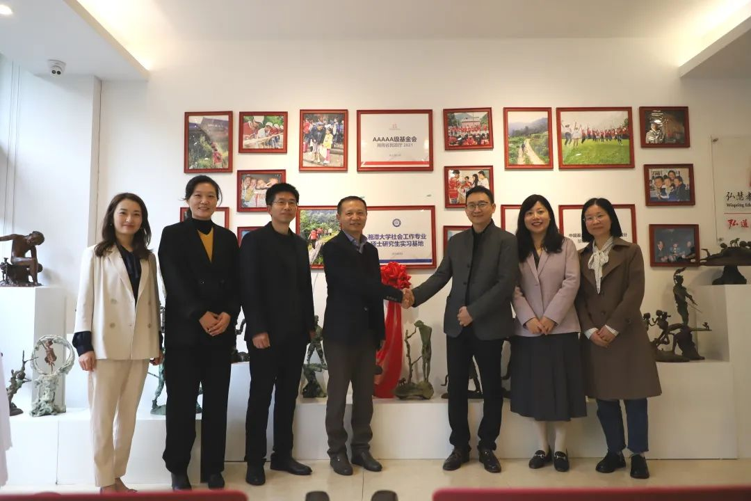 2023年3月16日上午,湘潭大学与湖南弘慧教育发展基金会合作共建社会工作研究生实习基地成功签约并正式揭牌。楼凤