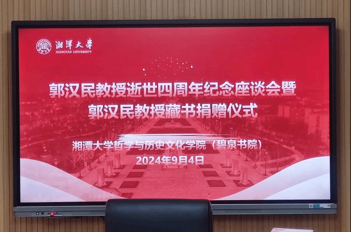 “缅怀前辈风范,汲取奋进力量”——2024年9月4日下午,“郭汉民教授逝世四周年纪念座谈会暨郭汉民教授藏书捐赠仪式”在湘潭大学楼凤