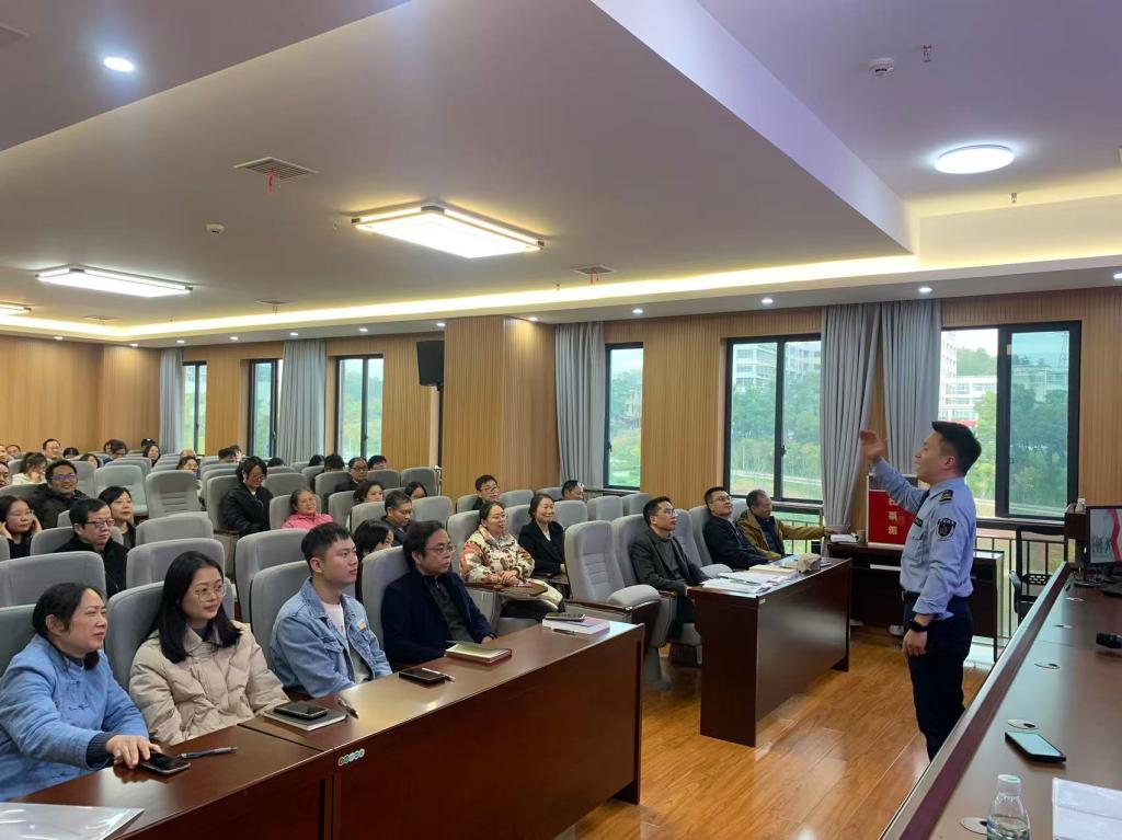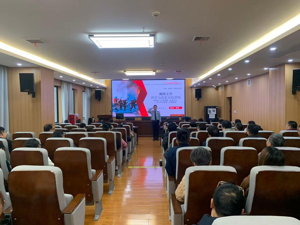 在学院东506学术报告厅成功举办了“全民消防、生命至上--安全用火用电”的专题培训。本次培训特邀长沙市进安消防中心程龙教官担任主讲,学院全体教职工参加此次培训。