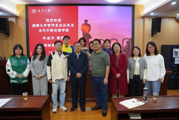 讲座伊始,作为湘潭大学79级哲学系校友,李建华教授深情回顾了在校求学的岁月,为母校日新月异的发展感到欣慰,并对湘潭大学应用伦理专业的设立表示祝贺。