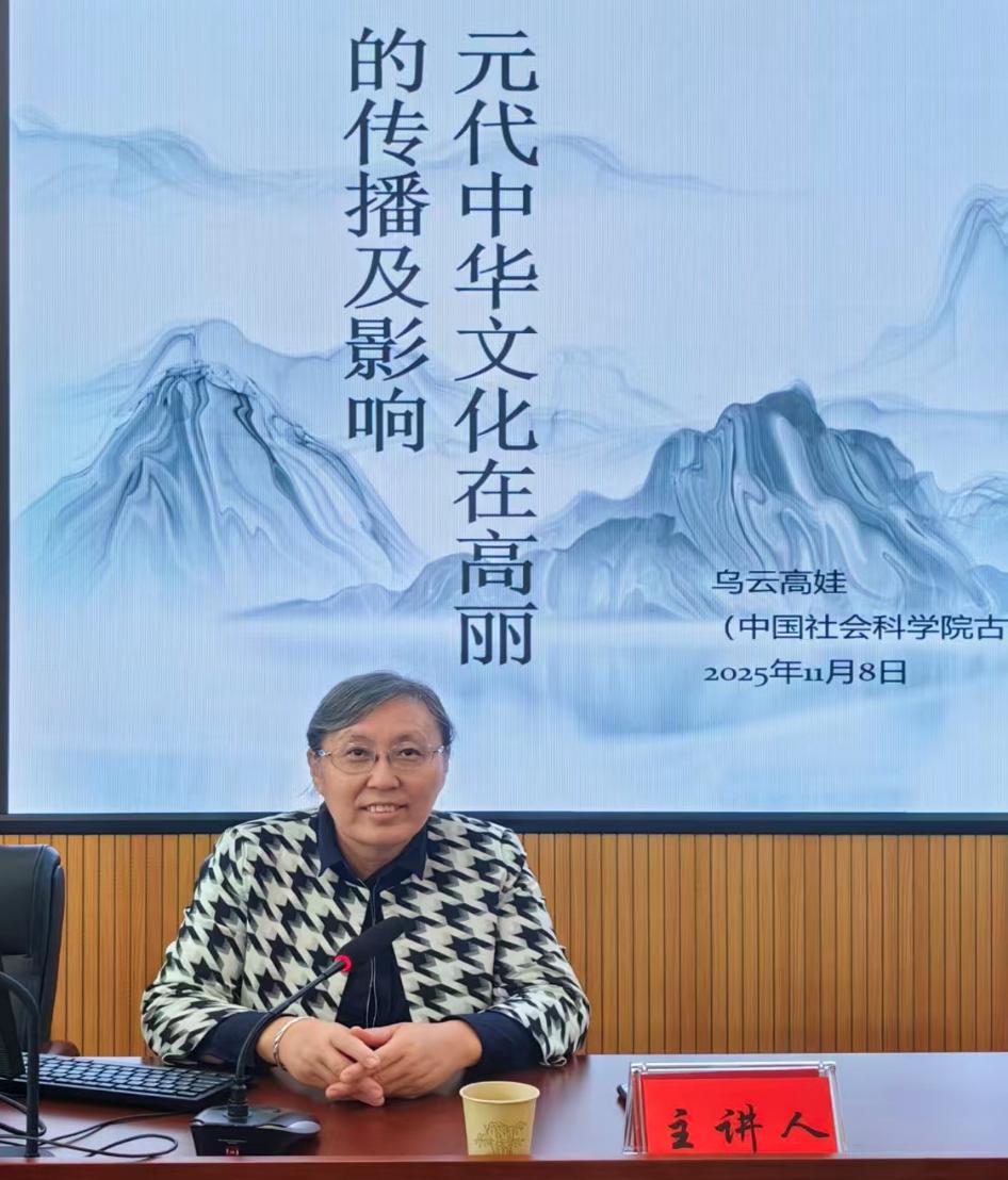 举办学术讲座,由中国社会科学院古代史研究所乌云高娃研究员主讲“元代中华文化在高丽的传播及影响”。讲座从多个角度系统梳理了元代中华文明向高丽传播的路径、内容及其深远影响,为理解古代中国与朝鲜半岛的文化交流提供了重要视角。讲座由楼凤