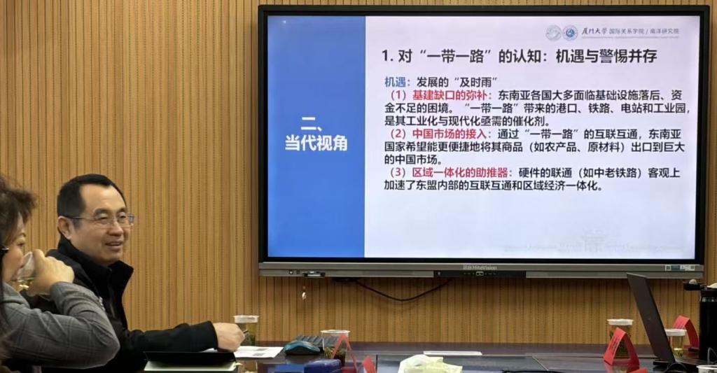 厦门大学冯立军教授以《东南亚视野下的历史中国与当代中国:以朝贡体系与“一带一路”倡议为例》为题进行学术发言。冯立军教授指出,历史上朝贡体系之下的东南亚并非被动的臣服者,而是主动参与的博弈者,将朝贡作为实用的多边外交资源。当代视角下,东南亚国家对待“一带一路”倡议的策略已从被动接受转向主动塑造,其兼具地理枢纽、倡议试验田与模式探索的作用。冯立军教授总结,无论面对古代中国还是当代中国,东南亚的核心目标始终是最大化获利的同时最小化对自身独立与自主权的损害,拥抱经济机遇,维持战略平衡。