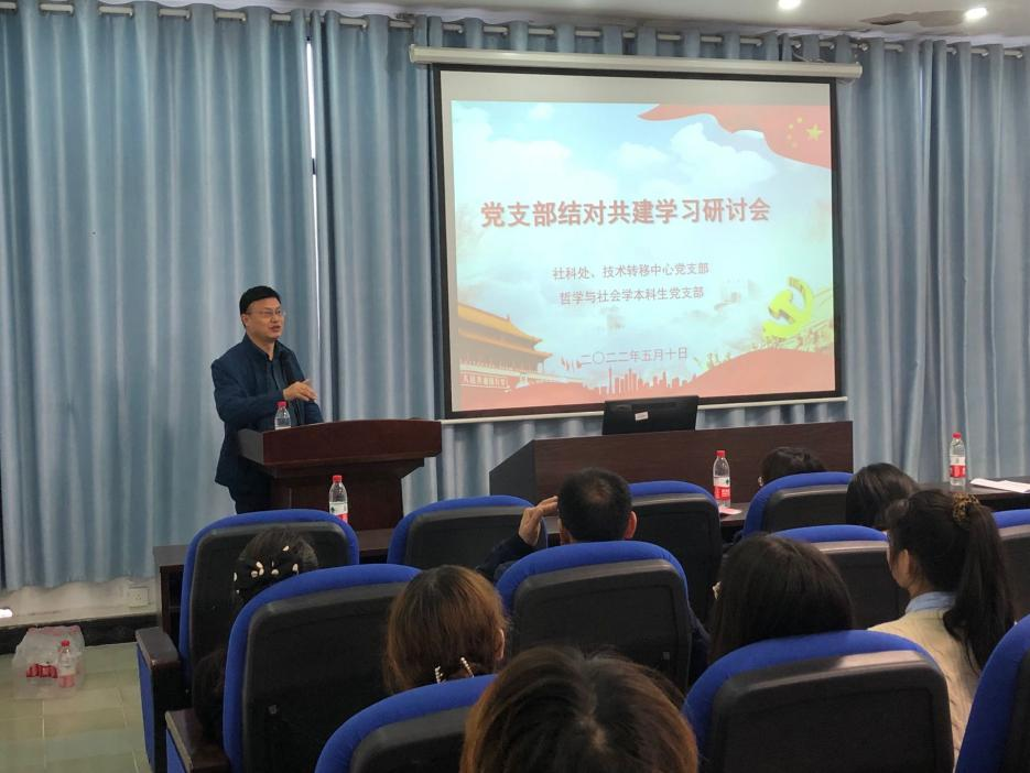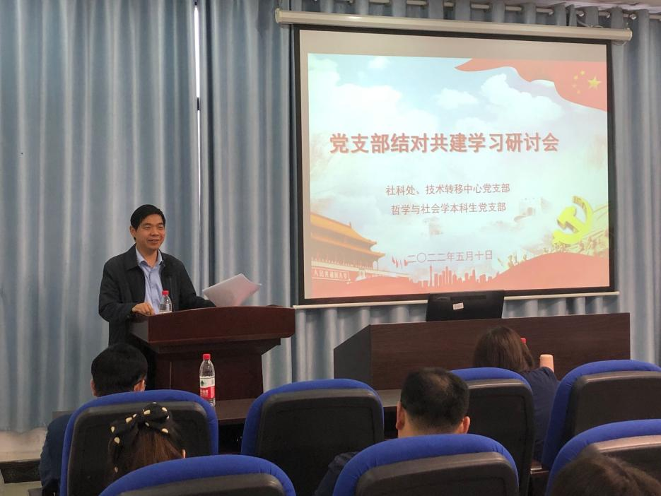 哲学与社会学本科生党支部于老办公楼511学术报告厅开展党支部结对共建学习研讨会,会议由社科处、技术转移中心党支部书记欧定余同志主持。